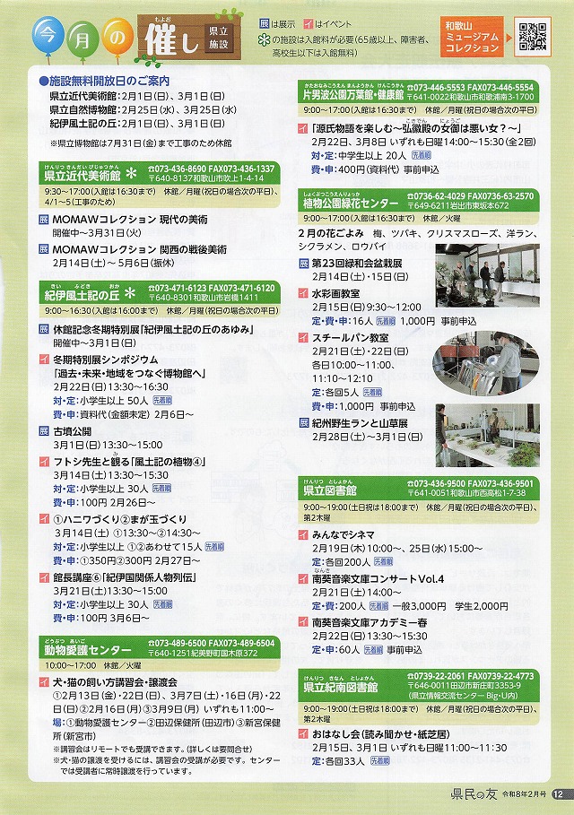 *毎月第4土曜日(2月28日、3月28日、4月25日)は「紀陽文化財団の日」として大学生無料